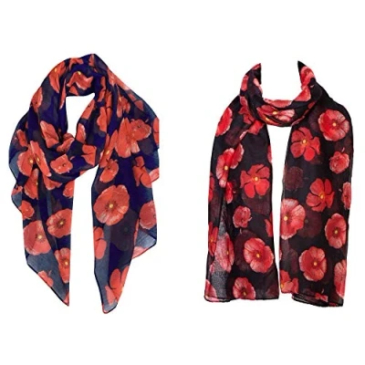 Christmas Bonanza Pack of 2 Scarves Wrap Shawl Scarf for Women Ladies (Poppy Black/Navy, 2)
