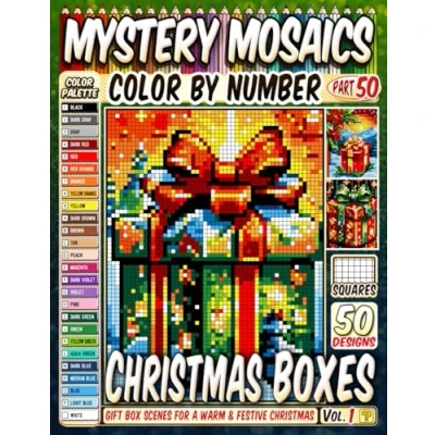Christmas Boxes Mystery Mosaic Color by Number: 50 Enchanting Gift Box Scenes for a Warm and Festive in Pixel Art