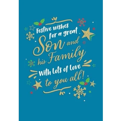 Christmas Card, Festive Wishes For a Great Son & his Family Description 9 x 6 inches Piccadilly Greetings