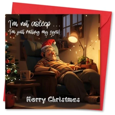 Christmas card for Dad/Husband. I'm not Sleeping... Design. Ecofriendly and UK made. Verse Inside. 150 x 150mm size.