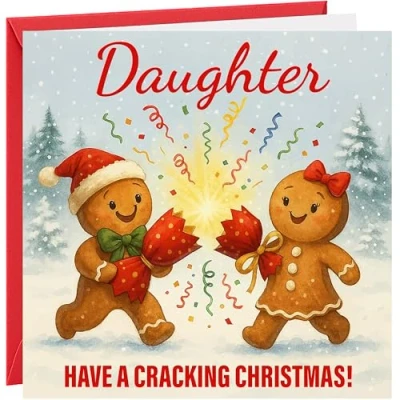 Christmas Card For Daughter Xms Greetings To Have a Cracking Gingerbread Cracker Design