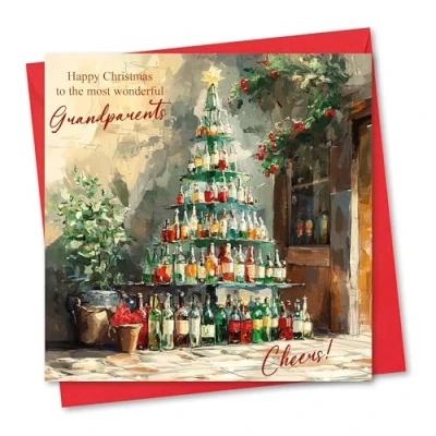 Christmas card for Grandparents. Courtyard Bottle Tree Design. Eco friendly & UK Made. Verse Inside. 148x148mm size.