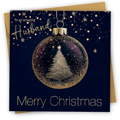Christmas Card for Husband. Luxury with gold foil and spot hi gloss. 150 x 150mm, supplied envelope. Ecofriendly Made in U.K.