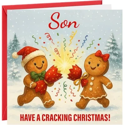 Christmas Card For Son Xmas Greetings To Have a Cracking Gingerbread Cracker Design