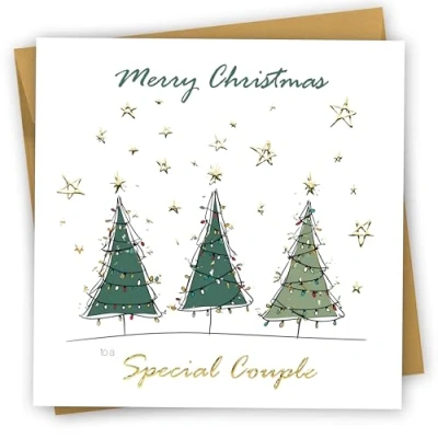 Christmas Card for Special Couple. Three Trees Design with Gold Foil. 150 x 150mm, supplied envelope. Ecofriendly and Made in U.K.