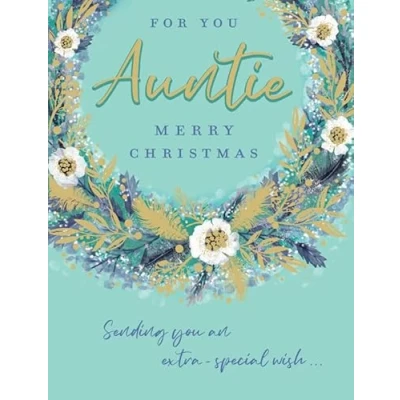 A High Quality Greeting Card and Envelope From Piccadilly Greetings Designed and made in the UK - supporting British jobs Caption: Auntie Description: Wreath Approximate size: 8 x 6 inches