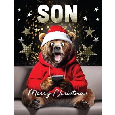 A High Quality Greeting Card and Envelope From Avant Garde Studios Designed and made in the UK - supporting British jobs Caption: Son Description: Sofa bear Approximate size: 8 x 6 inches