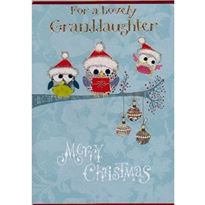 FESTIVE GRANDDAUGHTER CHRISTMAS CARD: Cute owls in santa hats, finished with gold foil details, featuring the front message "For a Lovely Granddaughter, Merry Christmas". PERFECT SIZE FOR POSTING: Measuring 176mm x 127 mm, supplied with a coordinating envelope to fit UK Royal Mail Letter size. HEARTFELT GREETING INSIDE: Warm message reads "Wishing you lots of love for the coming year" with space to add your own personal note. ECO-FRIENDLY & RESPONSIBLY MADE: Made using card and paper from sustainable sources, combining environmental responsibility with premium quality. THE GREAT BRITISH CARD COMPANY: A premium family-run UK card company who are best known for their humour ranges, as well as over one thousand different designs. Their cards are printed on high-quality board and finished to an exceptional standard.
