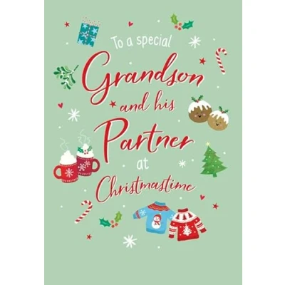 Christmas Card, To a Special Grandson & Partner 9 x 6 inches Piccadilly Greetings