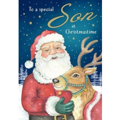Christmas Card, To a Special Son Santa & reindeer Description 9 x 6 inches Piccadilly Greetings