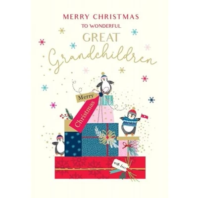 Christmas Card, To Wonderful Great Grandchildren 9 x 6 inches Piccadilly Greetings