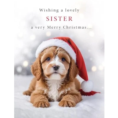 Christmas Card, Wishing a Lovely Sister Very Merry 8 x 6 inches Piccadilly Greetings