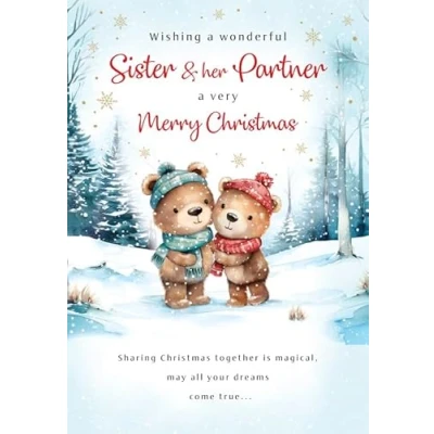 Christmas Card, Wishing a Wonderful Sister & Partner 9 x 6 inches Piccadilly Greetings