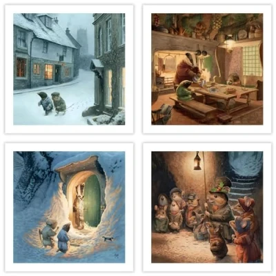 Christmas Cards Box of 16 the Wind in Willows Illustrated Designs by Chris Dunn Winter Wildlife 4 Each Eco Friendly Made UK