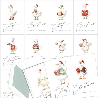 Christmas Cards Set of 30 with 15 Merry Goosemas Designs Festive Goose Greeting Card Envelopes