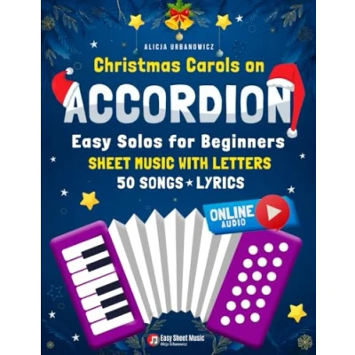 Christmas Carols on Accordion Easy Solos for Beginners: Learn 50 Popular Songs I Sheet Music with Letters and Lyrics Includes Online Audio Playing ... Kids Teens Adults Teachers Students at School