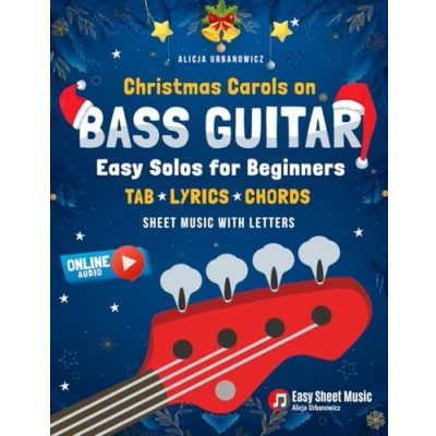 Christmas Carols on Bass Guitar I Easy Solos for Beginners: Learn 50 Popular Songs Sheet Music with Letters and Tablature Songbook Kids Adults ... the Playing Basics Gift Bassists