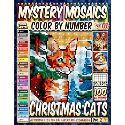 Christmas Cats Mystery Mosaics Color by Number: 100 Pixel Art Adventures for Cat Lovers and Relaxation Vol 2