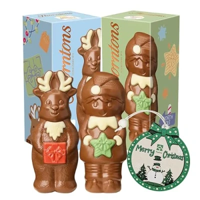 Christmas Chocolate: beautiful milk chocolate models are a great addition to any festivities this Christmas. Whether you're looking for Secret Santa gift, stocking fillers or a little treat in the build-up to the big day, bring a smile to their face with one of our seasonal chocolate characters. 1 x 90g Cheeky Reindeer: made from smooth milk chocolate with white and red decoration, our chocolate is a must for this year’s Christmas celebrations. These mouth-watering treats are the perfect addition to your holiday celebrations. 1 x 90g Cheeky Elf: with his pom-pom hat, stripy tights and decorated green present, this character is all about Christmas! Crafted from delicious milk chocolate with a white and green decoration, he’s sure to put a smile on anyone's face! Get into the festive spirit with these delightful Christmas Chocolate Bulk Buy Reindeer & Elf Models! Whether you're looking for the perfect Secret Santa gift or an enchanting stocking filler, these charming chocolates are sure to spread joy and holiday cheer. Not only are these chocolates delicious, but they can also serve as charming decorations for your holiday table or Christmas tree. Add a touch of sweetness and whimsy to your festive decor.