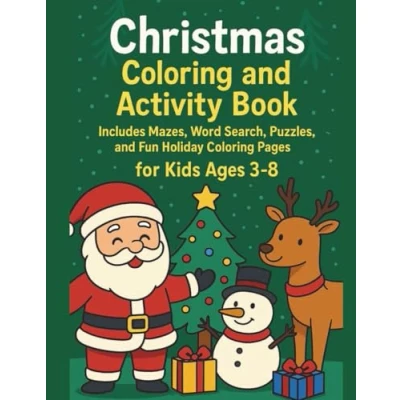christmas Coloring and activity book for kids ages 3 8: Includes Mazes, Word Search, Puzzles, Fun Holiday Pages