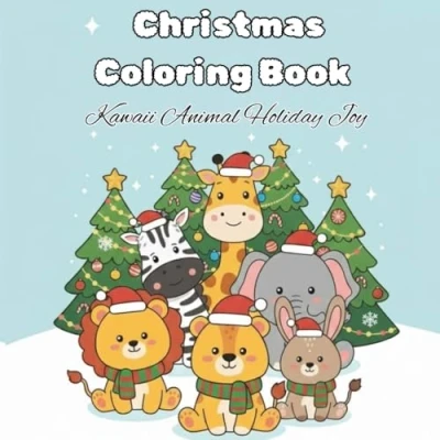 Christmas Coloring Book. Kawaii Animal Holiday Joy