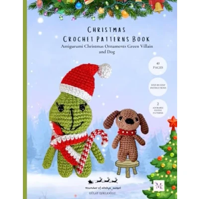 Christmas Crochet Patterns Book Amigurumi Ornaments Green Villain and Dog: 3 Adorable Festive for Holiday Decorations Gifts Winter Projects Grinch Dog Max Candy Cane Hat