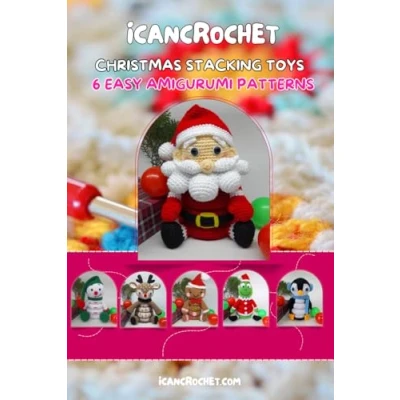 Christmas Crochet Stacking Toy Patterns: 6 Easy Amigurumi Step by Patterns for Santa Claus, Snowman, ... Handmade Montessori toys Kids.