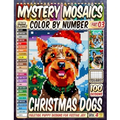 Christmas Dogs Mystery Mosaics Color by Number Vol 4: 100 Yuletide Puppy Pixel Art Designs for Festive Joy and Peace
