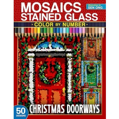 Christmas Doorways Stained Glass Mosaics Color by Number: 50 Festive Front Door Scenes