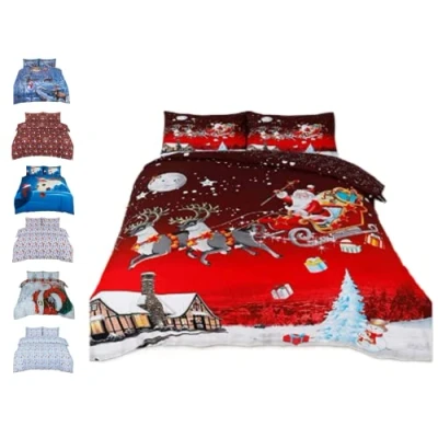 ✅CHRISTMAS BEDDING: Duvet bed ding cover soft comfortable for bedding and made of highly and good quality of soft fabric. This duvet set resists shrinking, stretching, and mildew. The Wrinkle Resistant Set is soft and smooth making it Easy to Sleep. They will love this comfortable and beautiful bedding with a unicorn Santa Father & Christmas Greetings print ✅LUXURY DESIGN: The xmax design is beautiful and cheerful. You will love this festive design. Santa and his reindeer in bright colors with a reverse start print. 3D Printed on PolyCotton is durable thusly Cost Effective Light Weight Hence Extremely Comfortable Premium Quality Duvet Set. The Breathable Duvet Set is Anti-Allergic the Easy-Care Set is also Anti-Dust/Mite and the Strong Tear Resistant Set ✅FEEL THE DIFFERENCE: Sleep Comfortable and wake up each morning your feelings refreshed and your mood will be too much beautiful. Silky Soft, most luxurious duvet bed you can find. This festive Christmas bed ding features an amazing winter scene full of frosty snow and cheerful people enjoying the special holiday season ✅SIZES: It's a lovely Christmas gift idea Single Duvet cover also available (1 x duvet cover + 1 Pillow case) Double: 200 x 200 cm approx. (1 x Duvet Cover + 2 Pillow Cases) King: 230 x 220 cm (1 x Duvet Cover + 2 Pillow Cases) Super King: 260 x 220 CM approx. (1 x Duvet Cover + 2 Pillow Cases ✅EASY TO CARE: The duvet cover is fully washable in household machines for quick. You just need to wash it in cold water and tumble dry it on low heat. Fold while the duvet set is still damp. It should not need ironing. Do not mix washing with other fibres like acrylic or polyester, as this may result in pilling of the polycotton set. Don’t use bleach. It’s still an iron-friendly material