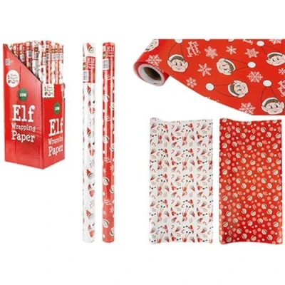 Christmas Elf Wrapping Paper Roll (10 m) Charming Assorted Designs, Perfect for Holiday Gifts, Festive Crafts, Decorations, & More