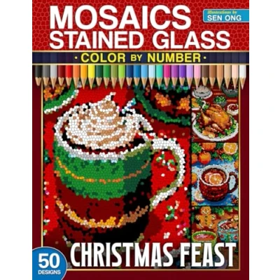 Christmas Feast Stained Glass Mosaics Color by Number: 50 Festive Dishes and Drinks