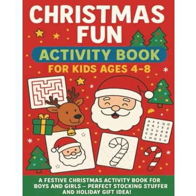 Christmas Fun Activity Book for Kids Ages 4 8: Mazes, Coloring Pages, Word Searches & More Holiday Fun!