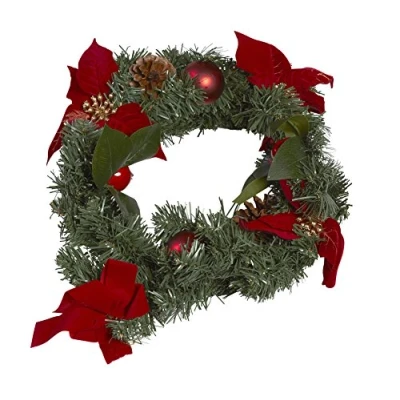 The size of the ring is 40 cm Decorated with red ribbons and flowers This Christmas wreath is easy to hang, for example on your door.