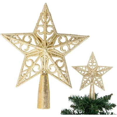 Christmas Gold Glitter Star Tree Topper Sparkling Decoration for Xmas