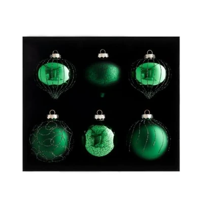 Christmas Green baubles to make your tree stand out this year 6 pack of onion and traditional baubles in matt and shiny finishes Different designs with glitter and mottled effects Traditional Bauble: 10 cm Onion Bauble: 10 cm