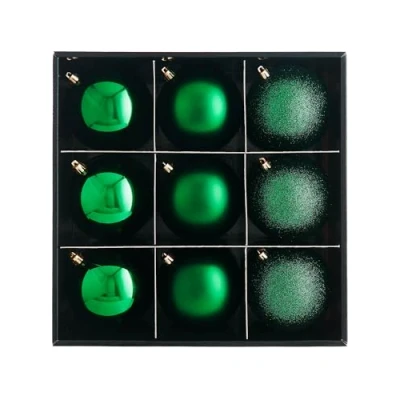 Christmas Green baubles to make your tree stand out this year 4 different designs with glitter and mottled effects Shatterproof material for durability and safety Gold hanging string Size: 8 cm