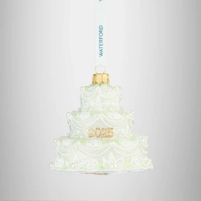 Commemorate a special moment with the Holiday Heirlooms Our First Cake 2025 Ornament. Shaped like a white wedding cake, this stunning piece features delicate pearl embellishments, intricate filigree icing, and elegant gold and green detailing. Handcrafted by skilled European artisans, itâs marked with the year 2025 to celebrate a milestone event, making it a meaningful keepsake. Presented in a Waterford-branded Fjord box with a clear lid and strung with a white grosgrain ribbon, itâs a timeless addition to any holiday collection.