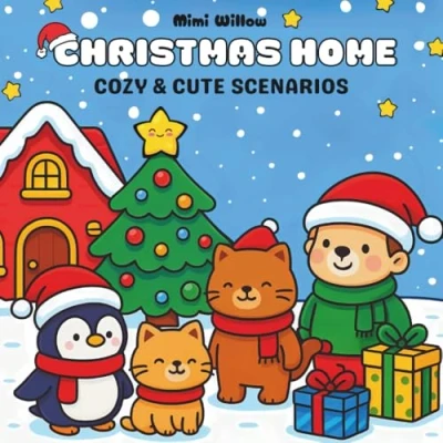 Christmas Home: A Cozy & Cute Holiday Coloring Book: Scenarios with Santa, Animals Cheer