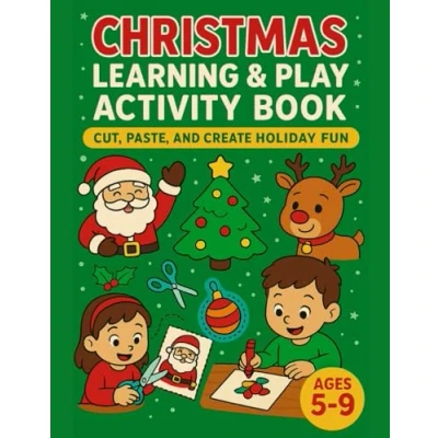 Christmas Learning & Play Activity Book Cut, Paste, and Create Holiday Fun: Fun Crafts, Coloring, Cut Paste Activities for Kids Ages 59