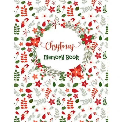 Christmas Memory Book: Red and Green Floral Holiday Journal to Keep Stories Pictures From Each Year Gathered in One Place with Space for Photos or Sketches Text