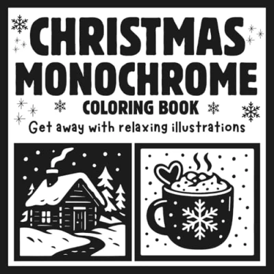 Christmas Monochrome Coloring Book: A One Color Holiday Experience With Pen for adults and teens