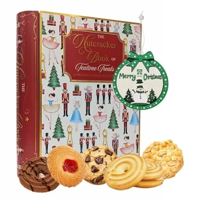Christmas Nutcracker Soldier Book Biscuit Tin Decorative Filled with Assorted Biscuits 260g & Tree Decoration. Great Gifts for Kids, Stocking Fillers