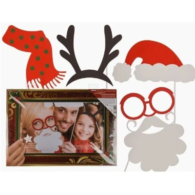 This set of special Christmas photobooth accessories including the scarf, the reindeer antlers, the Christmas hat, the glasses and the beard on a stick will provide lots of entertainment and atmosphere for an unforgettable Christmas.