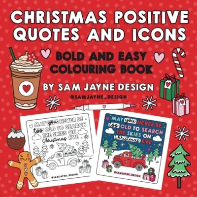 Christmas Positive Quotes and Icons: Bold Easy Coloring Book for Adults Teens