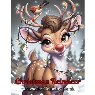 Christmas Reindeer: Grayscale Coloring Book: Detailed Book for Adults
