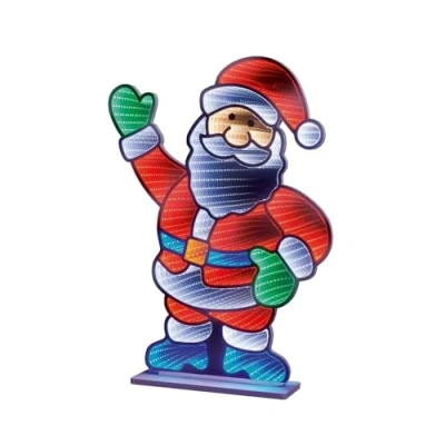 STANDING SANTA DESIGN – Festive 60 cm Santa figure with classic Christmas styling, bright colours and cheerful waving pose for an eye-catching seasonal display. 3D INFINITY LIGHT EFFECT – Features LED illumination that creates a mesmerising optical tunnel effect, producing a glowing 3D light illusion from every angle. INDOOR FESTIVE DECORATION – Perfect for windowsills, mantels, hallways, receptions or as a standout feature in your indoor Christmas décor scene. EASY TO POSITION – Includes a generous 5 m lead cable, allowing flexible placement around your home without needing an extension lead. DURABLE & REUSABLE DESIGN – Built with sturdy materials and efficient LEDs, ensuring reliable, long-lasting use year after year as part of your festive décor collection.