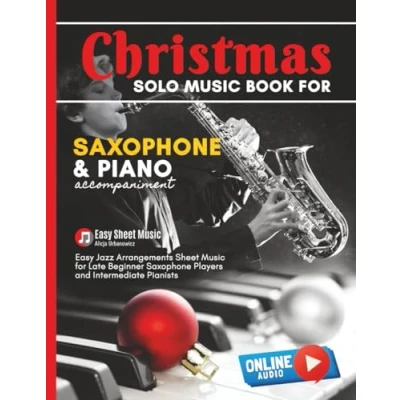 Christmas Solo Music Book for Saxophone and Piano Accompaniment: Alto Sax Easy Jazz Arrangements Sheet Late Beginner Players ... Bells I Jingle Silent Night more