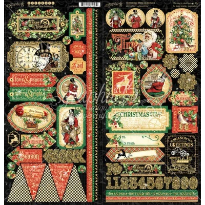 Christmas Time Stickers Christmas Time invites you to celebrate the most wonderful time of the year with festive images of vintage steampunk Santa's."ÔøΩ Emerald green trees, red holly berry, glittery gold gears, and coal-black trains set the tone for this holiday season. Cover weight stickers Features easy to use cut-apart and designer papers Made in the USA Graphic 45 cardstock-weight two 6"x12" element sticker sheets are ready-to-use in the colours and shapes of the Christmas Time line. CT1410 GR4502122 GR4502122 MPN 4502122
