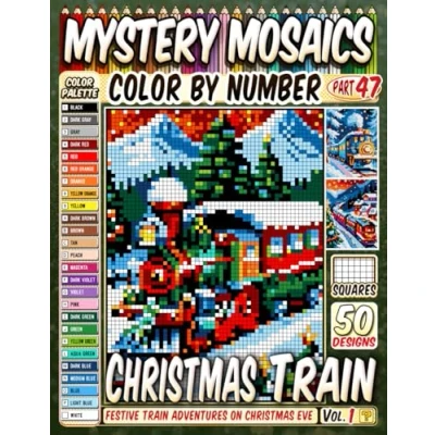 Christmas Train Mystery Mosaic Color by Number: 50 Festive Adventures on Eve in Pixel Style (Christmas Coloring)